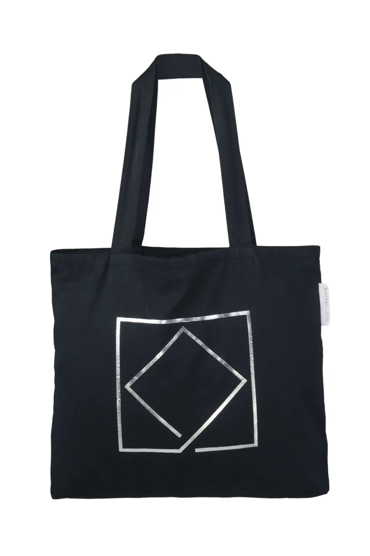 Płaska, szeroka torba reklamowa, szerokie wygodne uszy, nadruk wykonany folią metaliczną, metka wszyta w bok z tej samej tkaniny co torba.