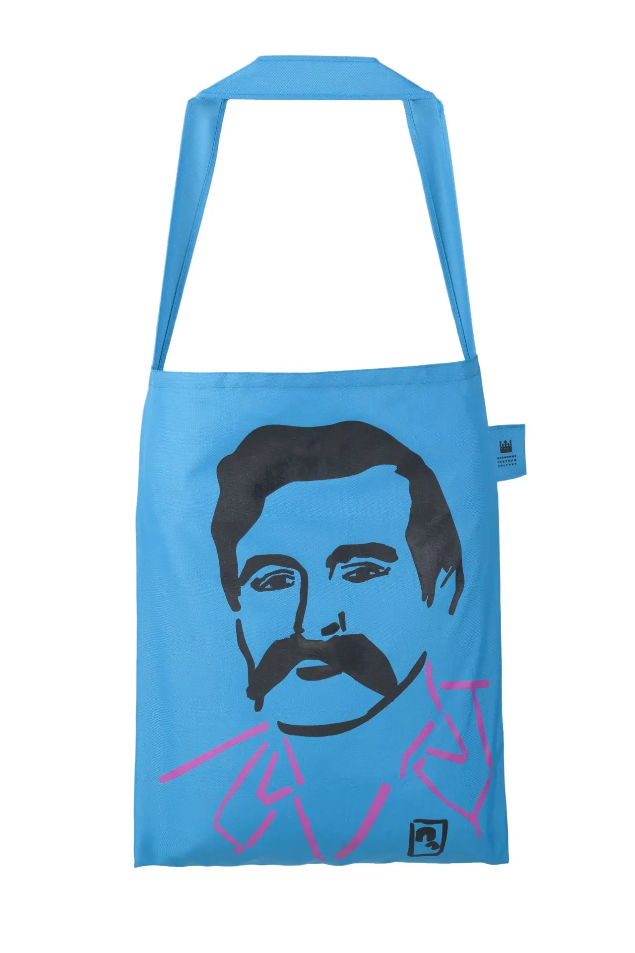 Torba poliestrowa, płaska, z jedną rączką na ramię, nadruk farbami rozpuszczalnikowymi, metka z tej samej tkaniny co torba, wszyta w bok.