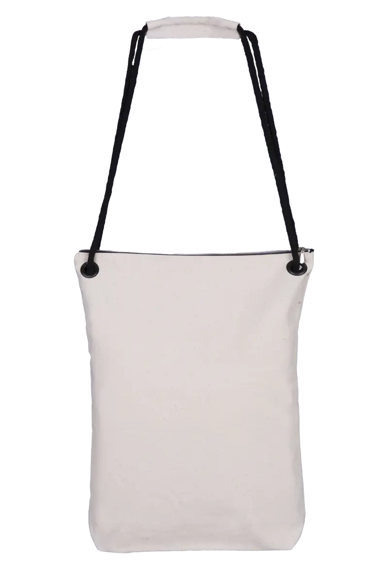 Niezwykle charakterystycznym elementem tej torby są jej sznurkowe uchwyty. Wykonane z bawełnianej linki, przechodzą przez solidne metalowe oczka umieszczone w górnych partiach frontów torby. Ten wzmocniony system zapobiega przecieraniu się sznurków na krawędziach metalowych oczek, co gwarantuje długotrwałość. Górna część uchwytów jest dodatkowo zabezpieczona ochraniaczem na ramię, co sprawia, że nawet przy pełnym obciążeniu torba nie sprawia uczucia dyskomfortu. Długie uchwyty pozwalają nosić torbę zarówno na ramieniu, jak i w ręku, dostosowując ją do swoich potrzeb.
