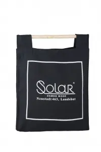 Torba z dnem, rączka drewniana, boczne stebnowania tworzące dno oraz boki. Nadruk na torbie w jednym kolorze.